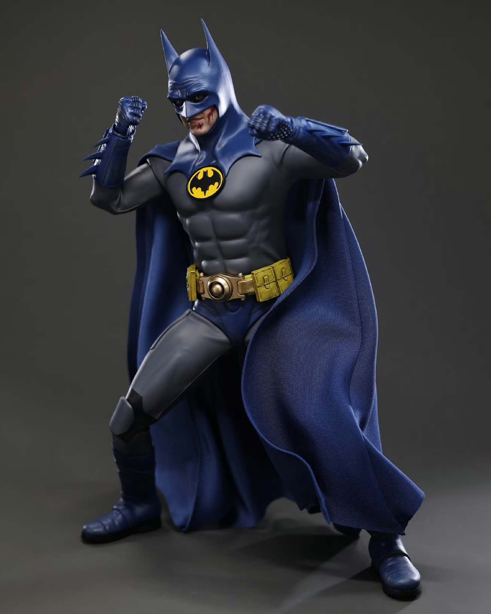 The 1/6th scale Batman (Blue & Grey Suit) Collectible Figure specially features: - Authentic and detailed likeness of Batman (Blue & Grey Suit) in The Flash - One (1) newly developed blue colored Batman cowl head with separate rolling eyeballs and three (3) types of interchangeable lower faces showing different expressions - Muscular body with 30 points of articulation - Approximately 30cm tall - Eight (8) pieces of interchangeable gloved hands, including: - One (1) pair of fists - One (1) pair of relaxed hands - One (1) pair of Batarang-holding hands - One (1) piece of opened gesture left hand - One (1) piece of Grapnel Gun-holding right hand - Available in a limited quantity of 1,500 units in selected markets