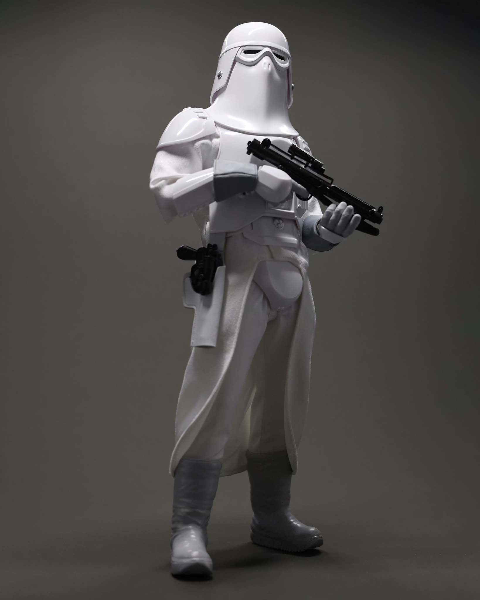Equipped with an E-11 blaster pistol, DL-44 blaster rifle, and a thermal detonator attachable to the belt, the Snowtrooper Commander is ready for any mission in the harshest conditions. The figure also features eight interchangeable hands, enabling a variety of display poses, ranging from issuing commands to engaging in battle. Completing the display, the commander stands on a specially designed snow-themed figure stand.