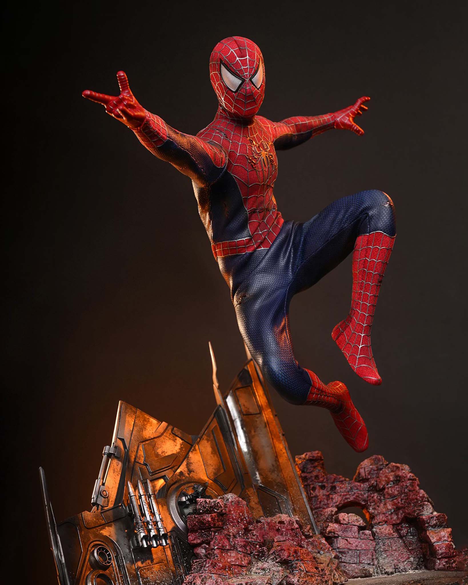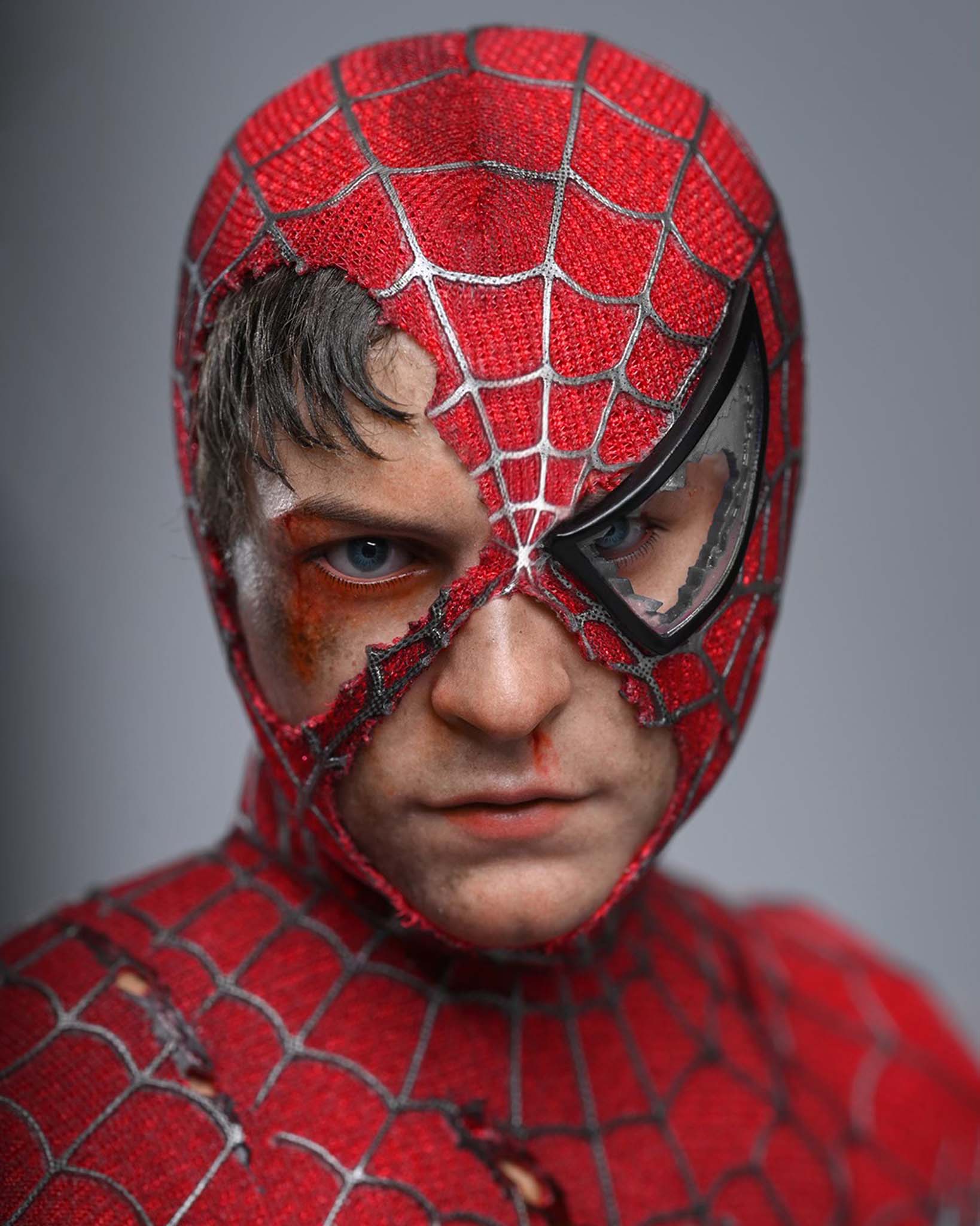 - Authentic and detailed likeness of Tobey Maguire as Spider-Man in battle-damaged state from the movie Spider-Man