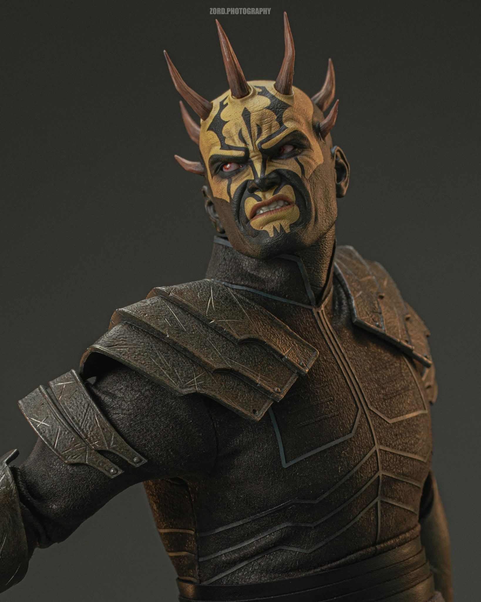 The 1/6th scale Savage Opress Collectible Figure specially features: - Authentic and detailed likeness of Savage Opress in Star Wars: The Clone Wars - One (1) newly developed head sculpt with separate rolling eyeballs system - Highly-accurate facial expression with iconic Sith Lord eyes, pointed horns, tattoos and detailed skin texture - Three (3) interchangeable battle damaged horns - Body with over 30 points of articulations - Approximately 34 cm tall - Six (6) pieces of interchangeable hands including: - One (1) pair of open hands - One (1) pair lightsaber holding hands - One (1) pair of fists - An interchangeable mechno left arm with three (3) different hands (open, fist and lightsaber holding) - Each piece of head sculpt is specially hand-painted
